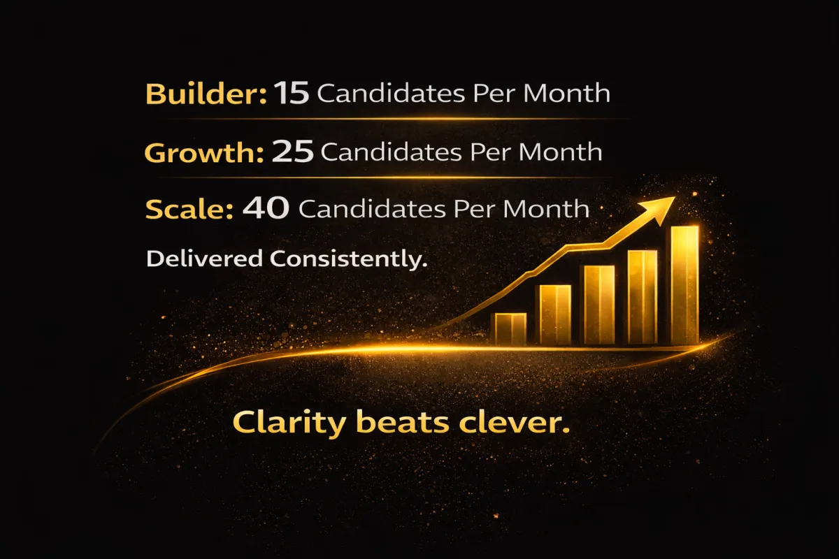 Growth increases your volume to 25 candidates per month and adds KPI tracking tools and optimization structure so you can measure and improve performance.